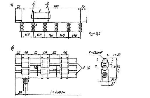 б) по поперечным балкам: конструкция поперечных балок; расчетный пролет балок; расстояние между осями поперечных балок вдоль моста; сечение балок в середине их пролета.
