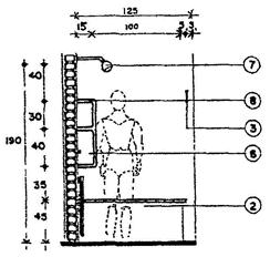 Специально оборудованная часть кабины, изображенная на чертежах, дополняется необходимым свободным пространством для передвижения размером не менее 125 см по оси душевого рожка.
