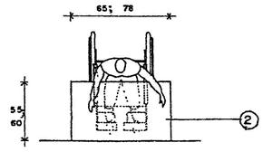 Специально оборудованная часть кабины, изображенная на чертежах, дополняется необходимым свободным пространством для передвижения размером не менее125см по оси душевого рожка.