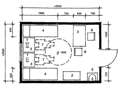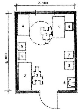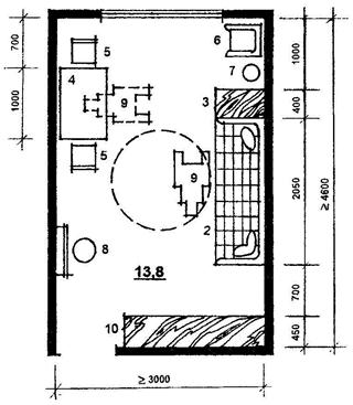 На рис. 3.1 приводится принципиальная схема функциональной взаимосвязи отдельных групп помещений дома-интерната для детей-инвалидов и престарелых, согласно которой все группы помещений изолированы и равноценно связаны между собой через нейтральную зону. На практике обеспечить всем группам помещений необходимую изоляцию достаточно сложно. Поэтому допустимо некоторые группы помещений, исключая спальные, предусматривать проходными. Наиболее безболезненно для нормального функционирования учреждения проходными могут быть административно-бытовые, медицинские помещения, помещения учебно-профессиональной подготовки и культурно-массового и оздоровительного назначения.