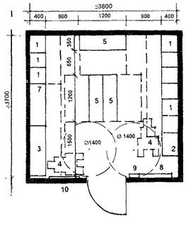 Планировочные особенности раздевальных при спортивном зале и бассейне, учитывающие специфику функционирования инвалидов-колясочников, приведены на рис. 7.2.