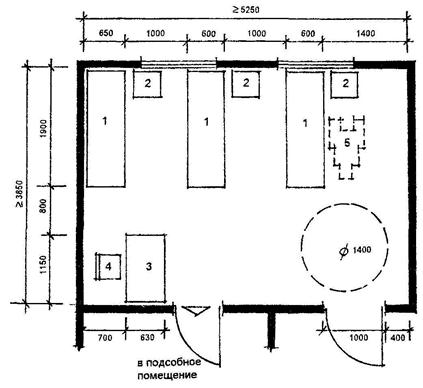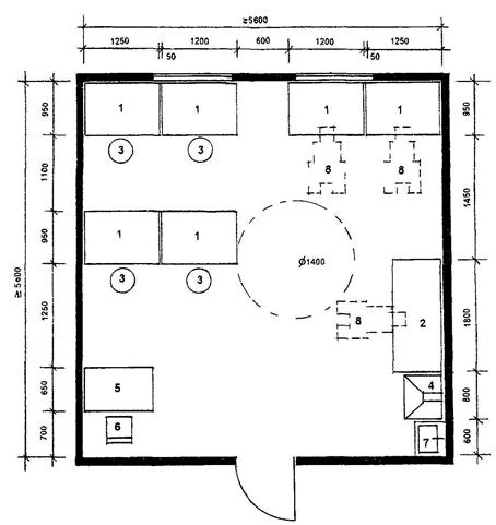 Вместимость столовой или буфета для обслуживания персонала определяется заданием на проектирование по расчету в зависимости от конкретных условий.