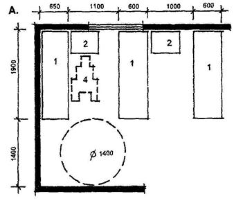 Производственные помещения кухни не имеют специфики проектирования в зависимости от обслуживания инвалидов-колясочников и поэтому формируются в соответствии с общими требованиями к проектированию помещений такого типа. В силу этого в настоящем Пособии этот вопрос не рассматривается.