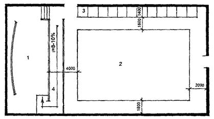 1. ОБЩИЙ ВИД ПЛАВАТЕЛЬНОГО БАССЕЙНА С ПОДЪЕМНЫМИ УСТРОЙСТВАМИ И ПАНДУСОМ ДЛЯ ОПУСКАНИЯ В ВОДУ
