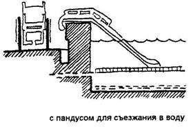 На рис. 7.3 - 7.5 приведены примеры приспособлений и оборудования, при меняемых для облегчения входа инвалидов в бассейн.