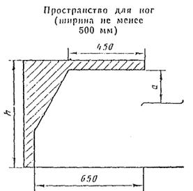 h - высота пространства для ног не менее 600 мм