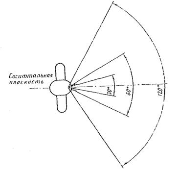 Зоны зрительного наблюдения в горизонтальной плоскости