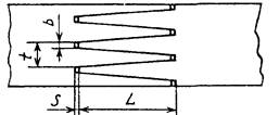 L - длина шипа; t - шаг соединения; b - затупление шипа; S - зазор в стыках