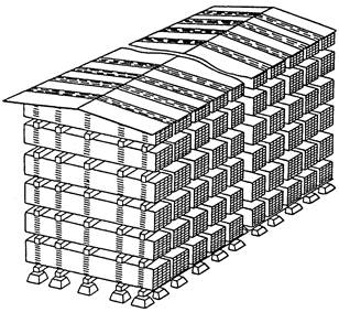 2.3. Пакетный штабель состоит из сушильных пакетов, одинаковых по размерам поперечного сечения и уложенных на фундамент горизонтальными и вертикальными рядами (черт. 14 приложения 1).