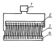 1 - записывающий прибор; 2 - термопары входного отверстия; 3 - соединительный провод; 4 - термопары выходного отверстия