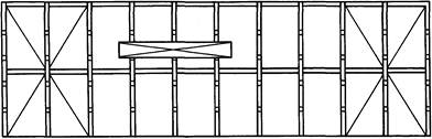 В задней плоскости с определенным шагом по длине стеллажа устанавливаются раскосы или предварительно напрягаемые растяжки. В соответствующих панелях верхней плоскости стеллажа также устанавливаются раскосы.