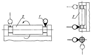 Измерения производят в двух крайних сечениях по длине ножевого вала в двух его положениях при повороте на 180°.