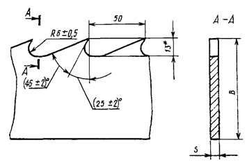 4.7. Способность зубьев пил типа 1 к разводу (п. 2.16) должна проверяться не менее чем на шести зубьях каждого рулона поочередным отгибанием их в ту и другую сторону. Отгиб должен обеспечивать остаточную деформацию (развод) не менее 0,4 мм.