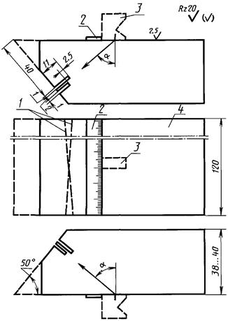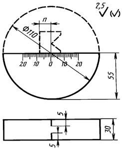 На боковых и рабочей поверхностях образца должны быть выгравированы риски, проходящие через центр полуокружности и по оси рабочей поверхности. В обе стороны от рисок на боковые поверхности наносят шкалы. Нуль шкалы должен совпадать с центром образца с точностью ±0,1 мм.