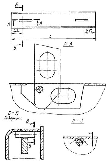 На бортах длиной до 4 м устанавливают две скобы (при длине борта до 1 м допускается устанавливать одну скобу). На бортах длиной св. 4 м число скоб выбирают из конструктивных соображений.