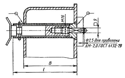 6.1.3. Установочные размеры замкового устройства (черт. 24 и 25) и соответствующую им длину болта (черт. 20) с учетом диаметра резьбы следует принимать по табл. 14.