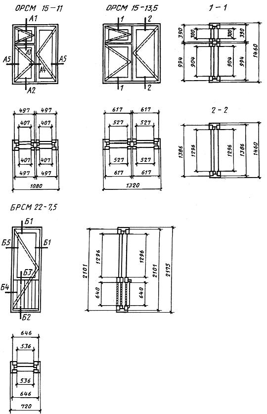 2.3. Конструкция, форма, основные размеры и марки окон и балконных дверей серии РСМ должны соответствовать указанным на черт. 13 - 15, а размеры сечений деталей и притворов - на черт. 16 - 23.