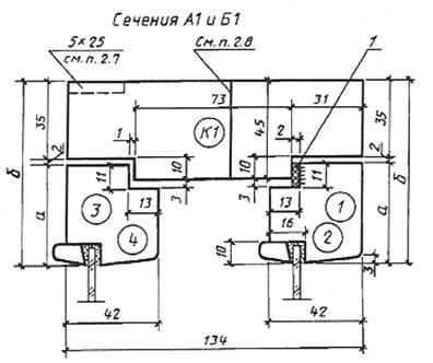 2. Цифры над схемами изделий означают размеры изделий в модулях (М - модуль, равный 100 мм).