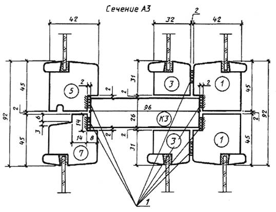 Сечения по притворам окон и балконных дверей с двойным остеклением