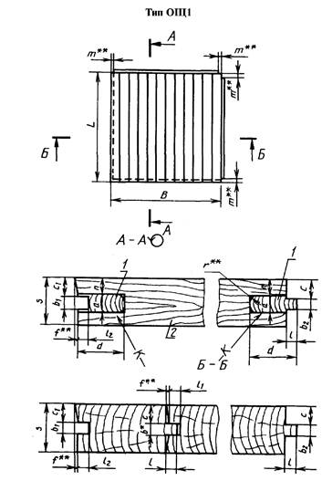 ОЩ1 - состоит из фрезерованных реек, соединенных по кромкам в паз и гребень без клея. По торцам рейки щита скреплены шпонками на клею (черт. 1):