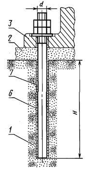 7. Глубина заделки болтов в бетон (размер Н), состав и марка бетона фундаментов, цементно-песчаной смеси, цементного раствора и клея назначаются в соответствии с действующими нормативными документами, утвержденными в установленном порядке.