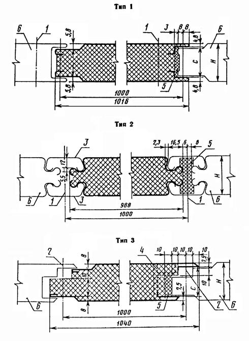 1.1. Панели по очертанию поперечного сечения продольных кромок подразделяют на типы: