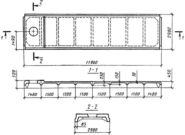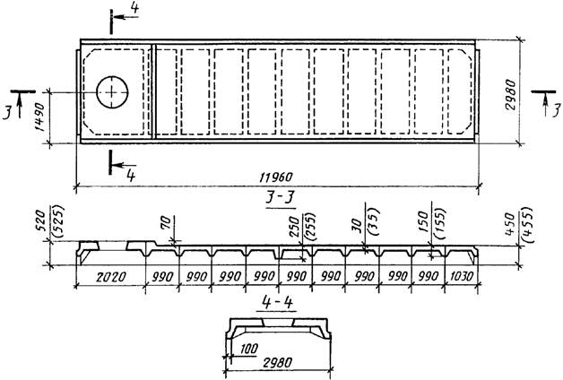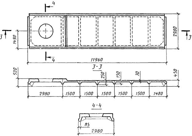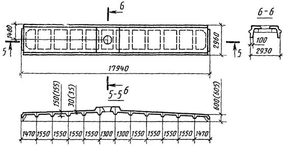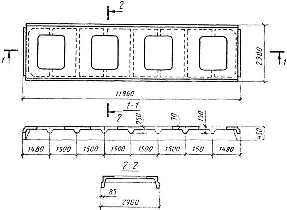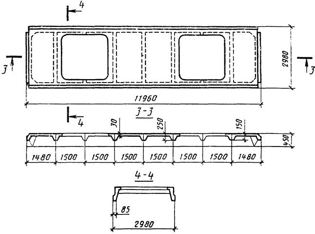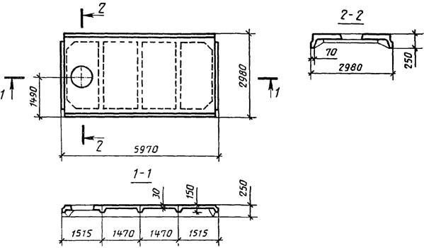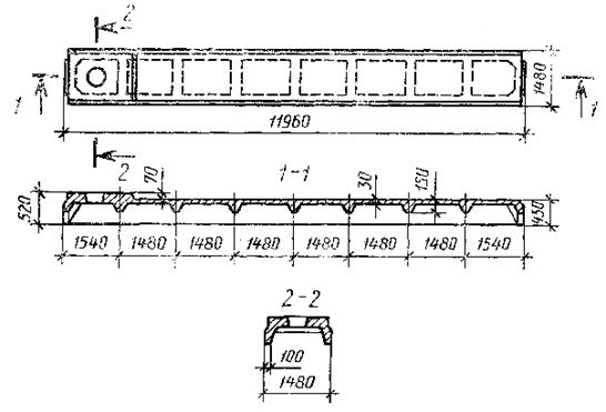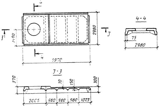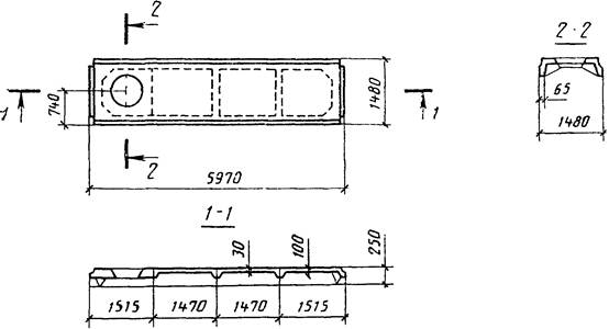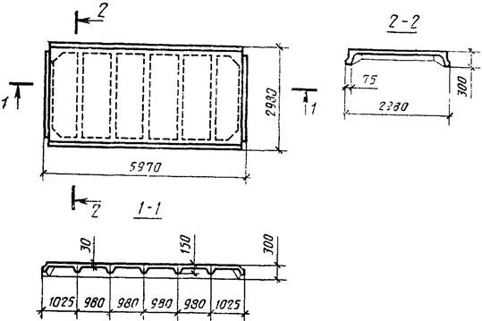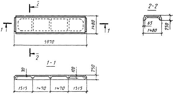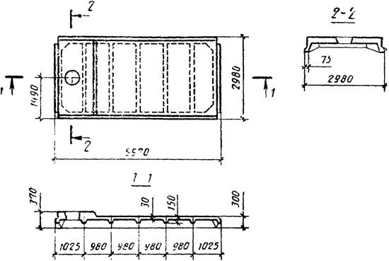 1.2.6. В случаях, предусмотренных проектом здания, плиты могут иметь дополнительные отверстия, вырезы в полках, углубления па наружных гранях продольных ребер для устройства бетонных шпонок между смежными плитами, а также дополнительные закладные изделия.