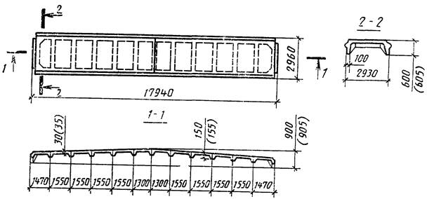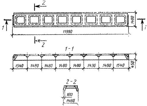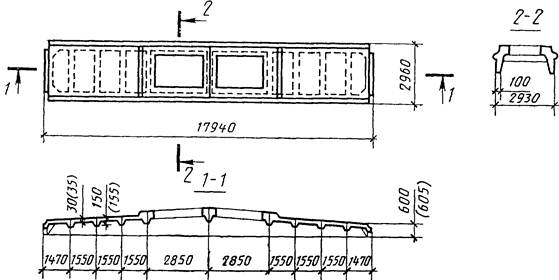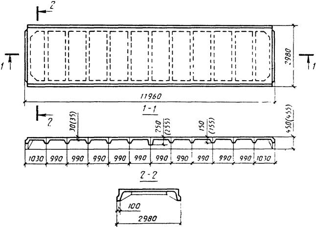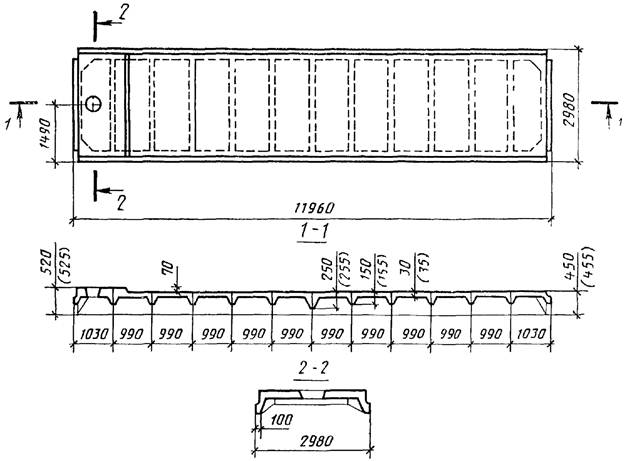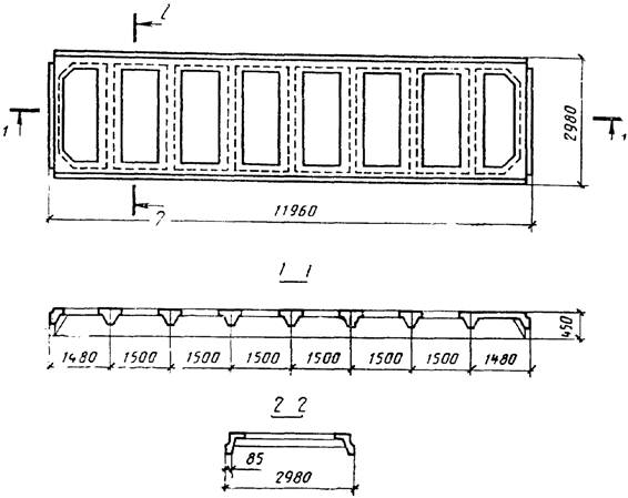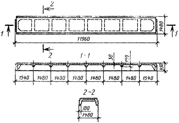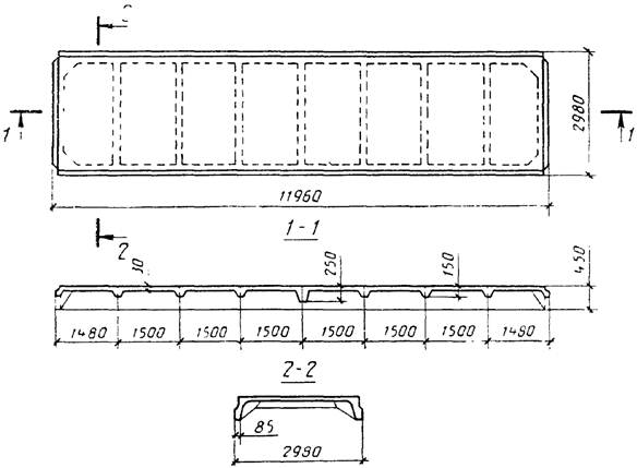 1.2.1. Железобетонные ребристые плиты координационными размерами 1,5´6, 1,5´12, 3´6, 3´12 и 3´18 м изготовляют предварительно напряженными, а доборные ребристые и плоские - с ненапрягаемой арматурой.