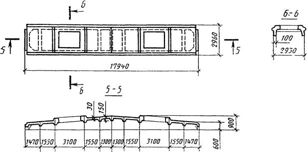 ПС - с проемами в полке плиты для установки светоаэрационных фонарей, с верхней плоской (горизонтальной или двускатной) поверхностью;
