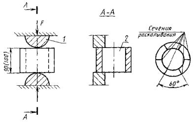 3.3. Образцы-кольца следует испытывать последовательным раскалыванием в шести радиальных сечениях по схеме, указанной на чертеже.
