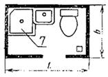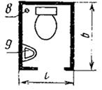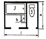 3 - ванна; 4 - умывальник; 5 - унитаз; 6 - трап; 7 - душевой поддон; 8 - канализационный стояк; 9 - рукомойник.