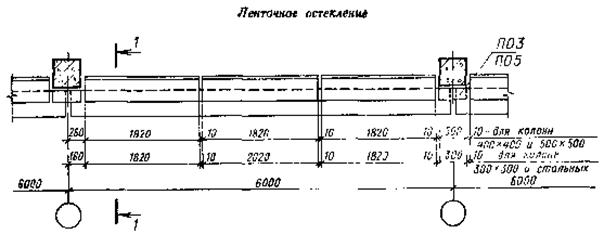 б) Стены из трехслойных металлических панелей с утеплителем из пенополиуретана с опиранием их на цокольные железобетонные панели при ширине оконного проема:
