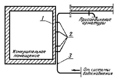 Шум, производимый системой водоснабжения и сливом воды, не должен попадать в измерительное помещение.