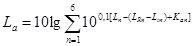 Lin = 10lg(100,1Lx + 100,1Ly + 100,1Lz), (5)