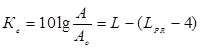 Ke - поправка на эквивалентную площадь звукопоглощения, дБА.