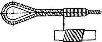 2.4.4. При заделке концов каната заплеткой места сплетения проволок должны обкатываться обжимными роликами или протягиваться через обжимную втулку. Разрешается при индивидуальном изготовлении место заплетки стропа уплотнять простукиванием молотком.