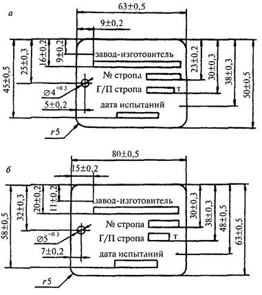 а - для стропов грузоподъемностью до 3,2 т; б - свыше 3,2 т