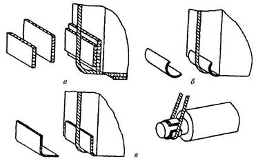 трубы (б), проставок из резинотканевых шлангов, плоских ремней и т. п. (в)