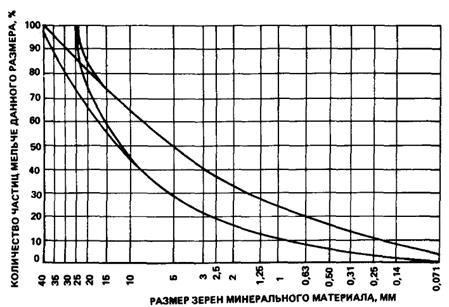 6.2. Минеральная часть смесей подбирается в соответствии с кривыми зерновых составов (см. рис. 4, 6, 7).