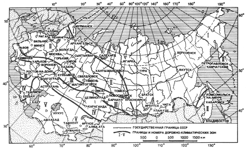 Рис. 109. Дорожно-климатические зоны на территории СССР