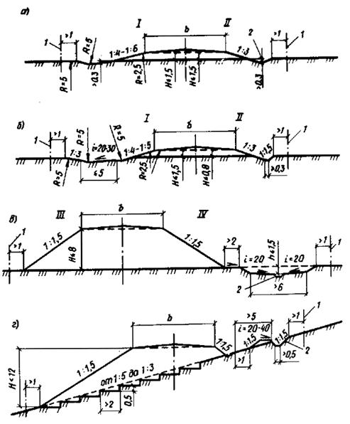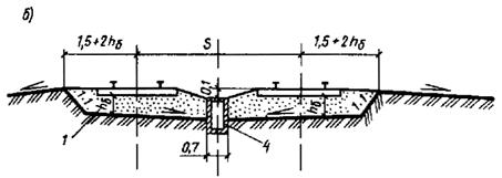 1.33. При проектировании насыпей через болота необходимо предусматривать мероприятия, исключающие заболачивание в верховой части болота, поэтому нижнюю часть насыпи сооружают из дренирующих грунтов, вдоль насыпи устраивают продольные канавы. Если возведение земляного полотна может создать опасность подтопления поверхностными водами и заболачивания прилегающих к дороге земель, то в проекте следует предусматривать водоотводные сооружения.