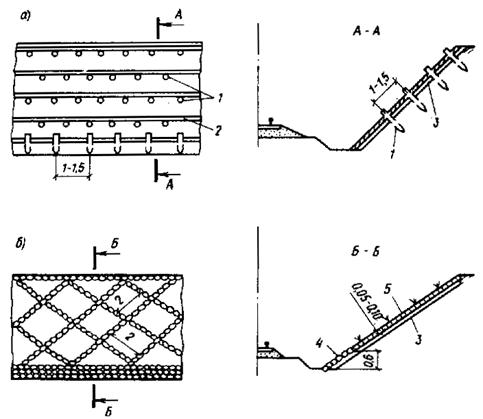 В случае влажных откосов скальных грунтов под слоем металлической сетки укладывают геотекстиль.