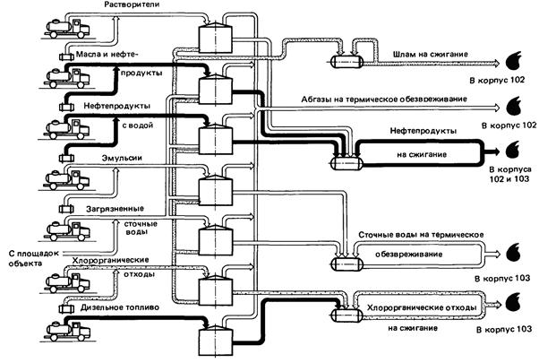 Жидкие горючие, жидкие хлорорганические и пастообразные горючие отходы, а также сточные воды, содержащие органические и минеральные загрязнения, собираются в специальные герметические емкости раздельно.