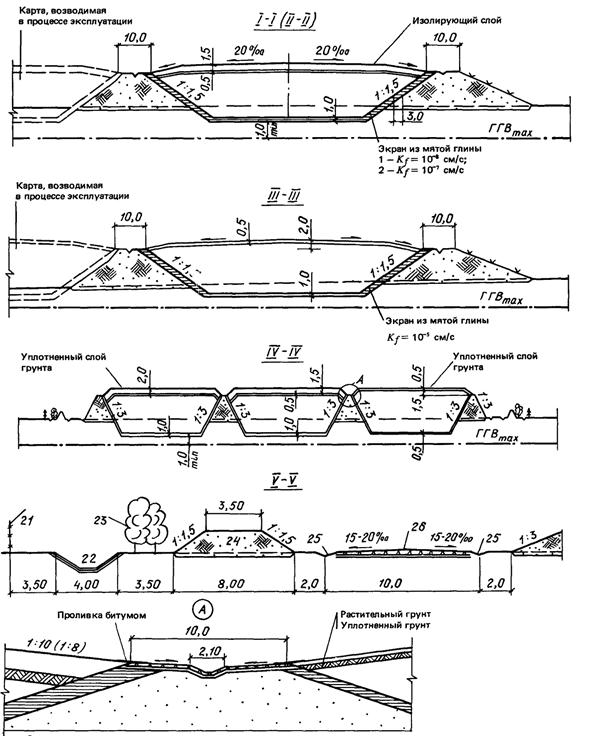 Примечание. При обнаружении загрязнений в контрольных скважинах необходимо начать систематический контроль воды во всех дренажных колодцах на выход от сооружений не реже двух раз в месяц.