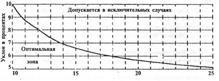 График 1. Зависимость длины марша пандуса от величины его уклона