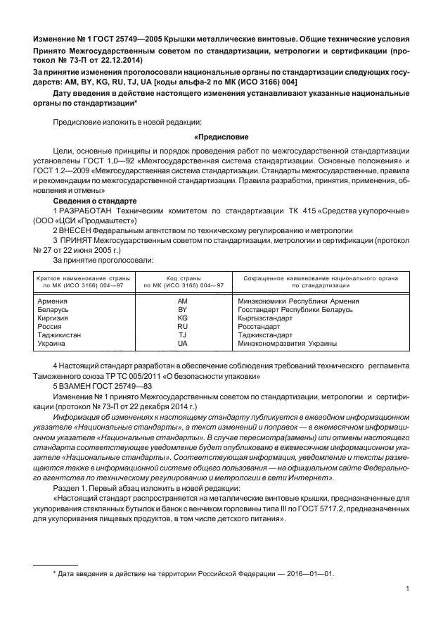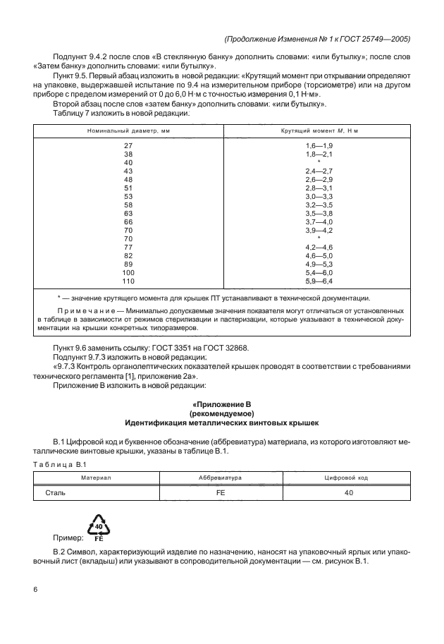 | Приложение №2: | Изменение №1 к ГОСТ 25749-2005 |
