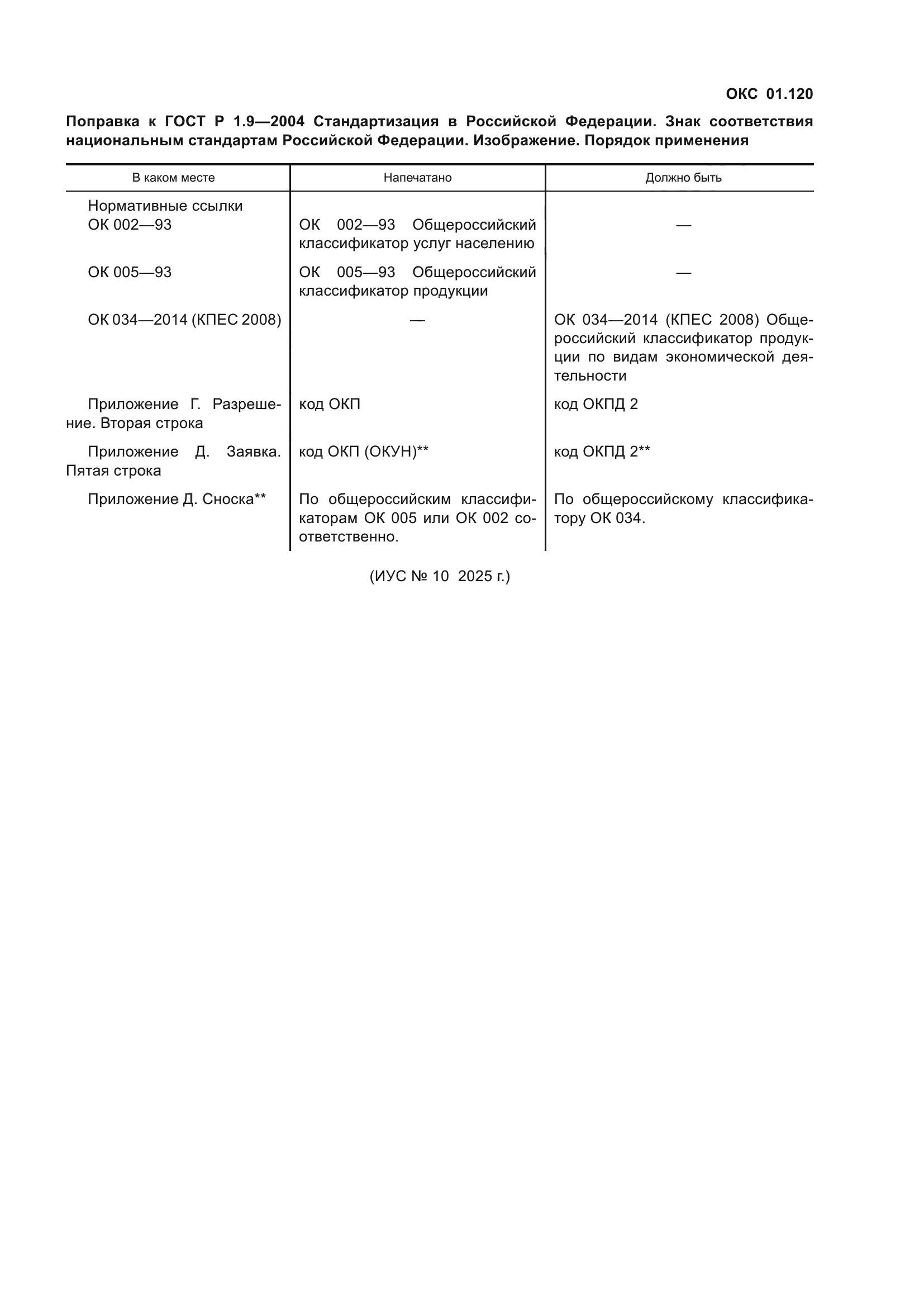 | Приложение №2: | Поправка к ГОСТ Р 1.9-2004 |