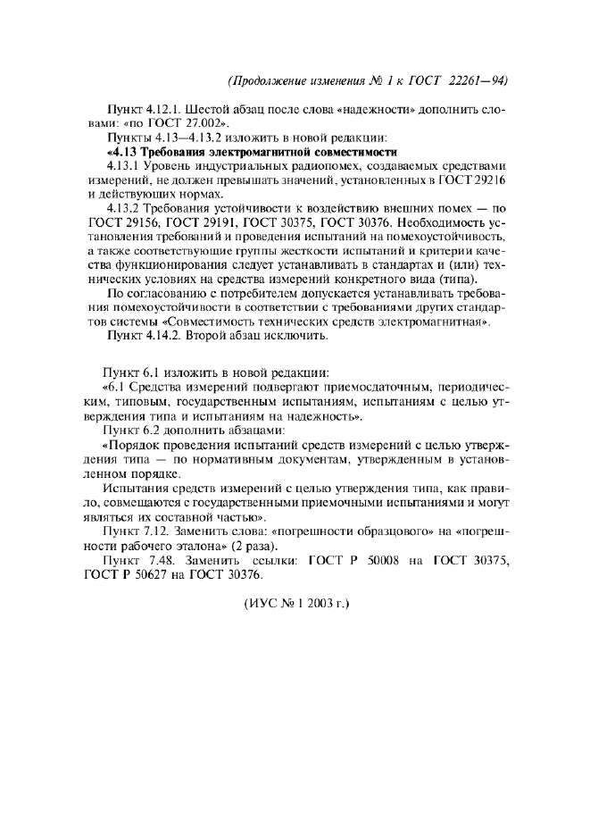 | Приложение №1: | Изменение №1 к ГОСТ 22261-94 |