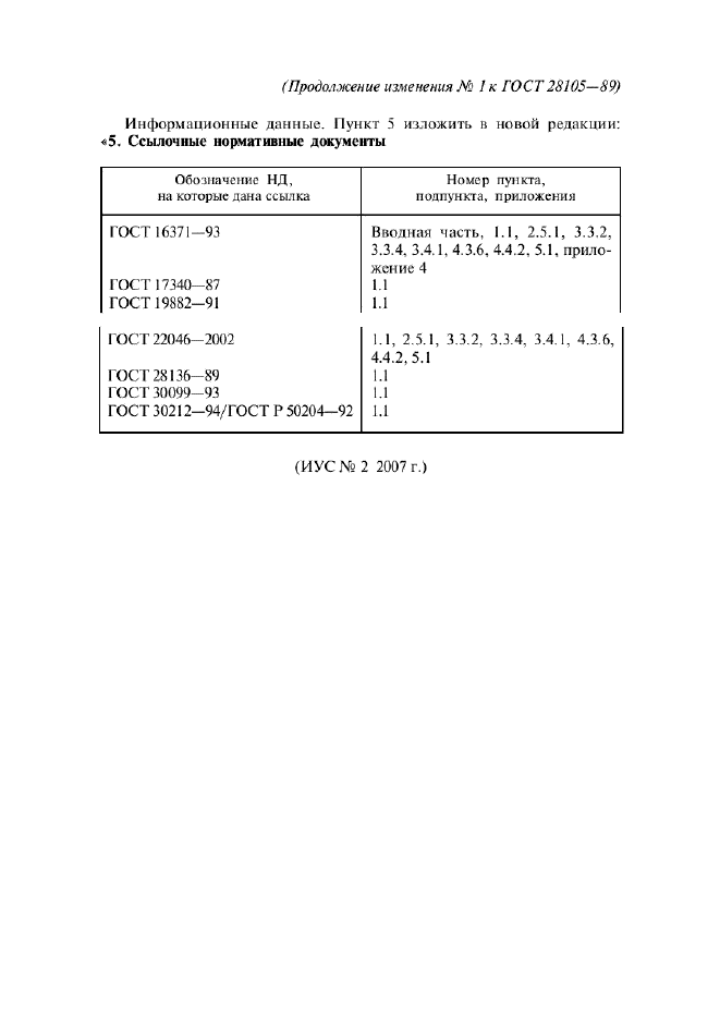 | Приложение №1: | Изменение №1 к ГОСТ 28105-89 |