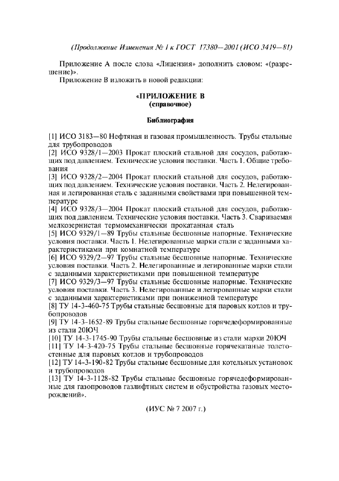 | Приложение №1: | Изменение №1 к ГОСТ 17380-2001 |